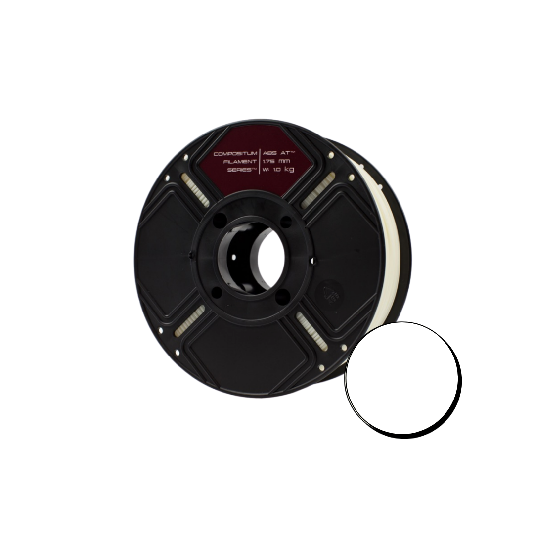 Compositum ABS AT - Materiał ABS dedykowany dla zastosowań przemysłowych i profesjonalnych, systemu otwartych oraz zamkniętych drukarek 3D FDM. Ze względu na wzorcową spójność warstw doskonale sprawdza się do druku dużych i skomplikowanych modeli bez konieczności posiadania zamkniętej lub grzanej komory. Modele wytworzone z filamentu ABS-AT są bardzo dobrze obrabialne, a wytrzymałość gwintów wewnętrznych jest porównywalna z gwintami wykonanymi w aluminium. Materiał ten ze względu na bardzo dobre właściwości samo-smarowne idealnie sprawdza się przy prototypowaniu i wytwarzaniu elementów ślizgowych.