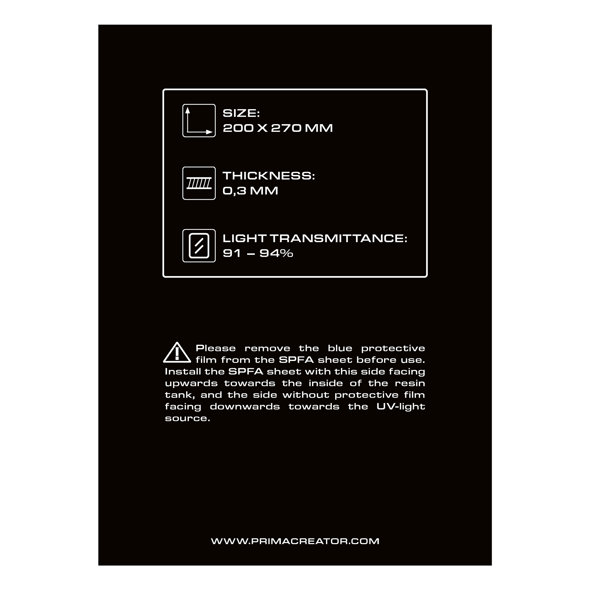 Folia SPFA skutecznie zapobiega adsorpcji i adhezji elektrostatycznej, poprawiając skuteczność pracy drukarki. Dzięki temu, że w trakcie pracy z folią SPFA zmniejsza się siła uwalniania żywicy od folii, co gwarantuje większą żywotność samej folii (do 10 razy dłuższą niż w przypadku zwykłej folii FEP), jak i mniejsze zużycie samej drukarki.