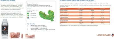 Modele wydrukowane z żywicy Premium Model charakteryzują się wysokim stopniem dokładności, stabilnością wymiarową oraz niskim skurczem przetwórczym.